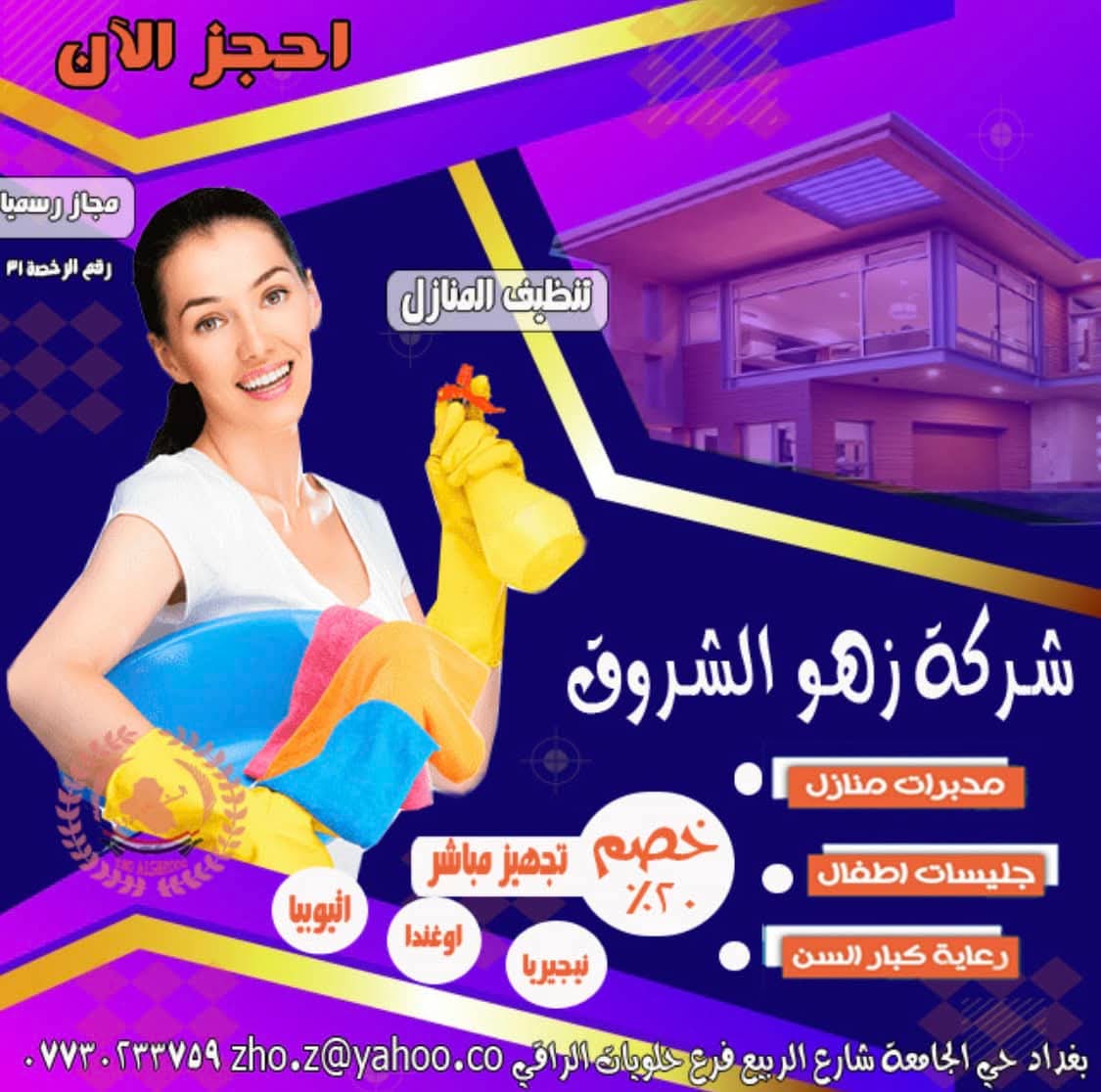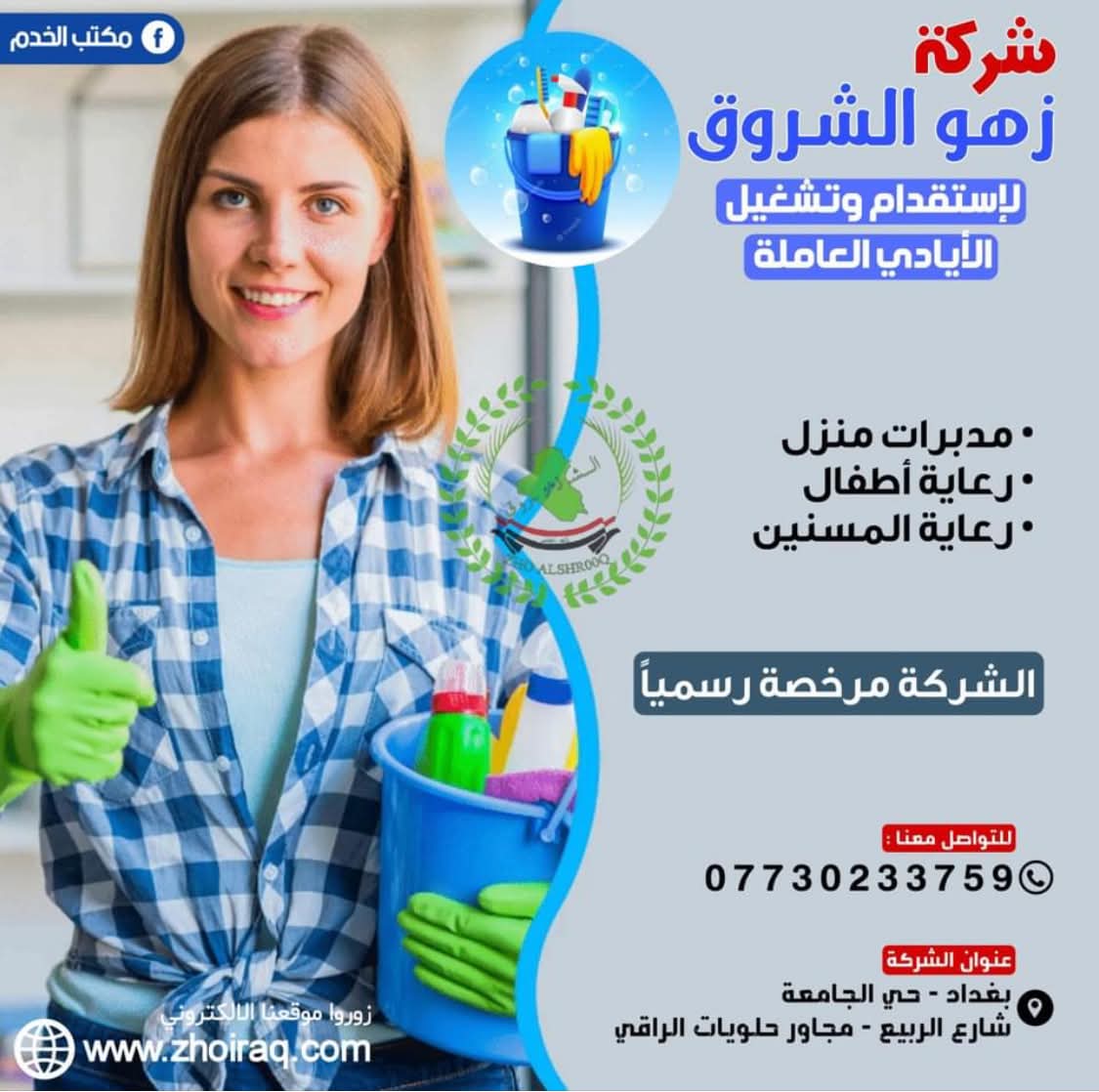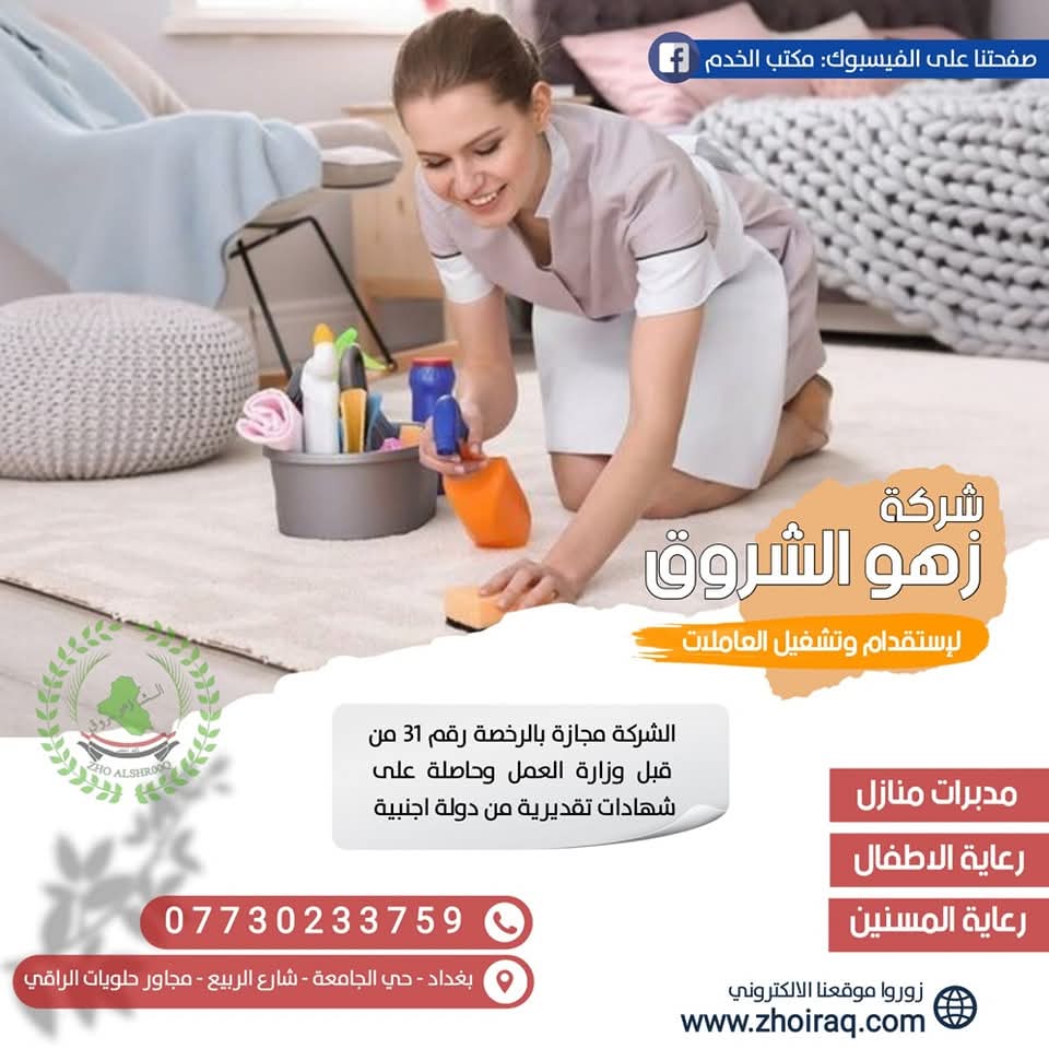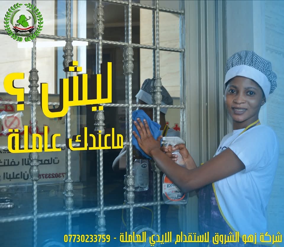 لتشغيل الايادي العاملة من دول إثيوبيا _ نيجيريا _ كينيا _ أوغندا _تنزانيا _ مربيات منازل و رعاية الأطفال و كبار السن _ الشركة مجازة من وزارة العمل العراقية _ خدماتنا منذ اكثر من 17 سنة