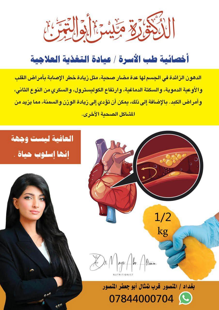 بكلوريوس طب و جراحة عامة _ كلية الطب _ جامعة بغداد _ اختصاص طب الأسرة _ اختصاص التغذية العلاجية _ بغداد _ المنصور _