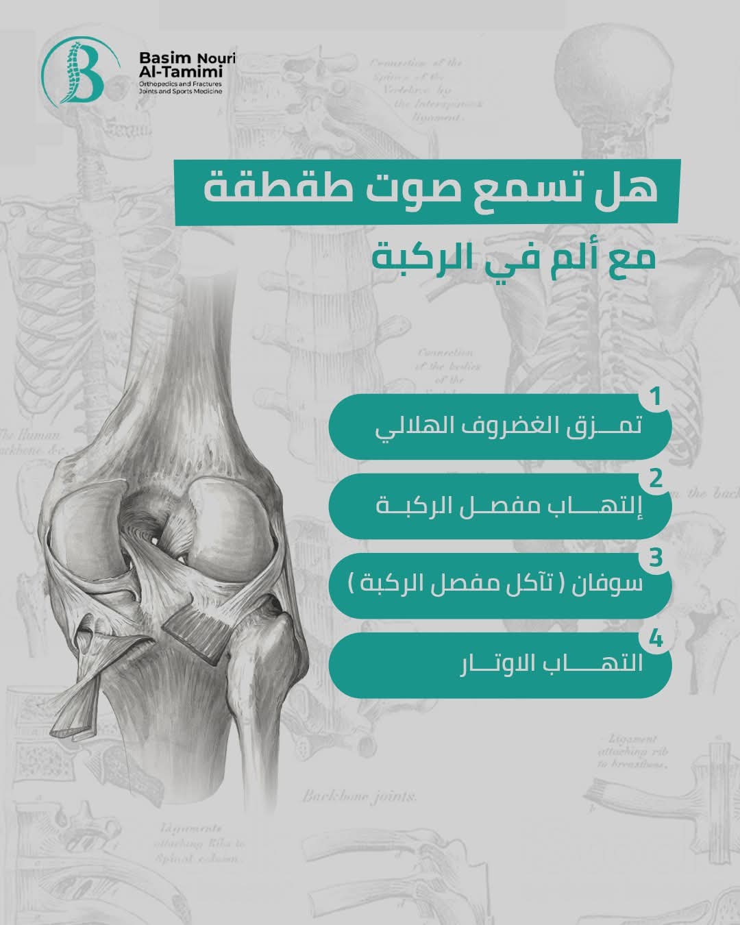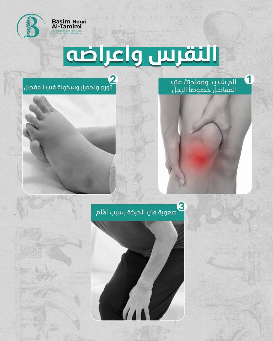 بكلوريوس طب و جراحة عامة _أخصائي العظام و الكسور _ مفاصل _ تأهيل طبي _ إصابات رياضية _ تقويم عظام _ عمليات جراحة الكسور و العظام _