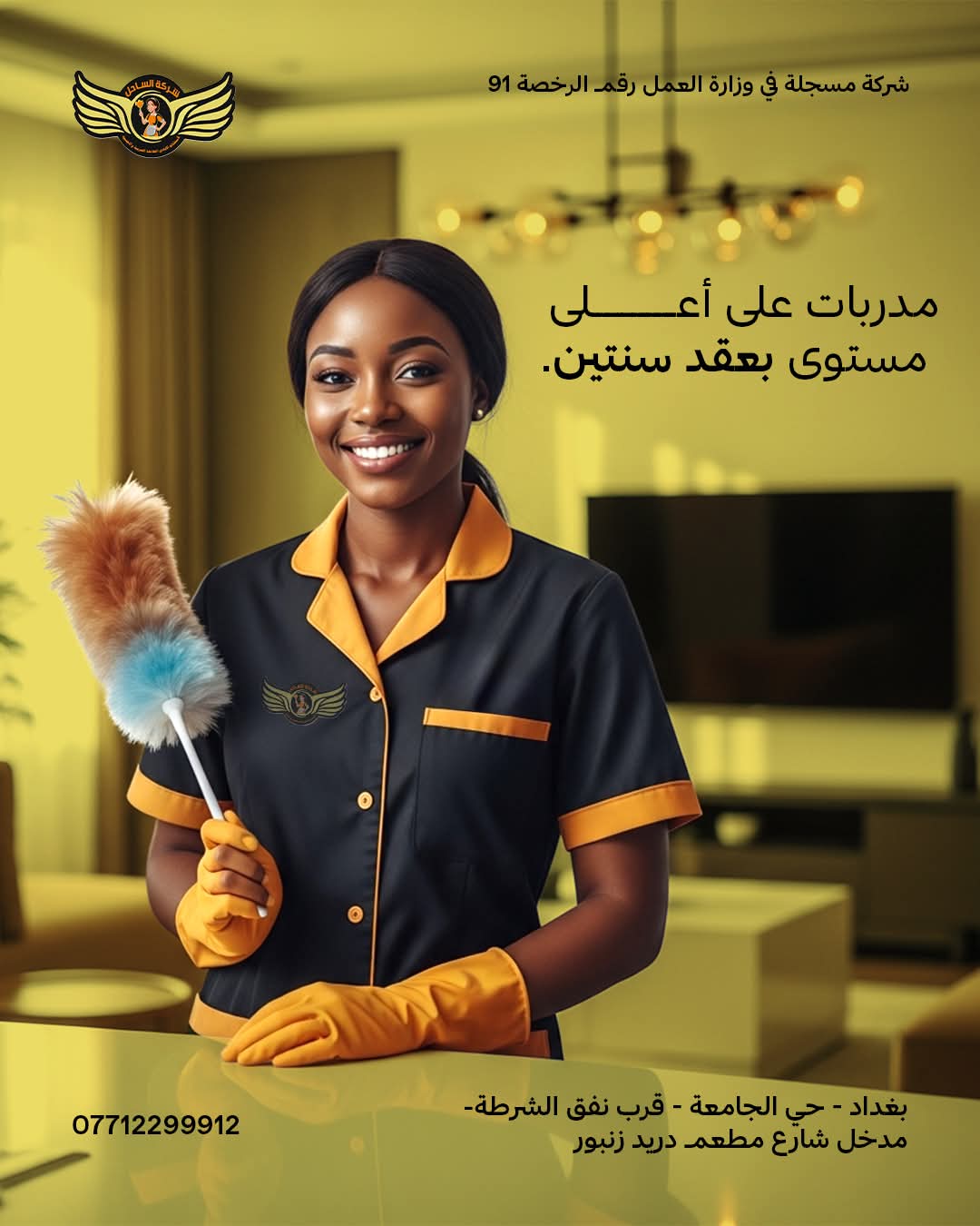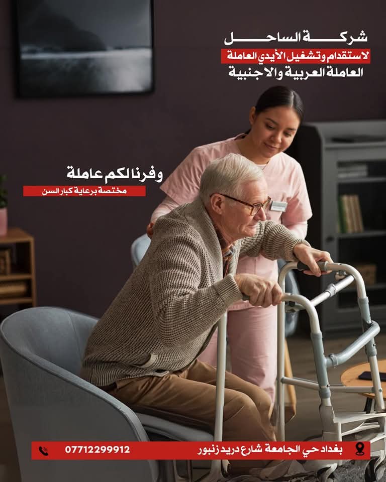 نوفر لكم كوادر مدربة و متخصصة لعاملات ذو خبرة ممتازة _ معينات لكبار السن و المقعدين _ مربيات أطفال من جنسيات عربية و اجنبية _ الشركة مجازة من وزارة العمل و الشؤون الاجتماعية